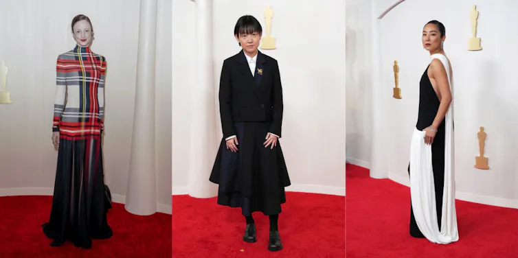 Beberapa yang menonjol dalam lautan prediktabilitas monokrom ini adalah ansambel karya Jonathan Anderson di Loewe. Greta Lee menampilkan keanggunan sederhana dalam balutan gaun hitam putih langsung dari runway Musim Gugur 2024, Celine Song melanjutkan komitmennya pada jahitan dengan rok dan blazer yang tajam, dan Andrea Riseborough menerobos kilau yang ada dengan gaun kotak-kotak lengan panjang yang unik untuk tampil karpet merah.