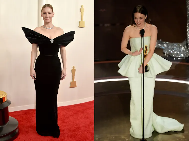 Sorotan lainnya termasuk Sandra Hüller dalam balutan busana Schiaparelli kustom, dengan detail lengan bersayap tajam yang mengingatkan kita pada gaun karya Gilbert Adrian yang dikenakan sosialita Amerika Millicent Rogers tahun 1947, Emma Stone dalam balutan Louis Vuitton hijau mint dengan peplum (aksen mengembang) yang mengingatkan pada detail lengan dari kostum pemenang Desain Kostum Terbaiknya di Poor Things, dan Wim Wenders dengan pakaian Yohji Yamamoto yang sama seperti yang dia modelkan di atas catwalk Januari lalu.