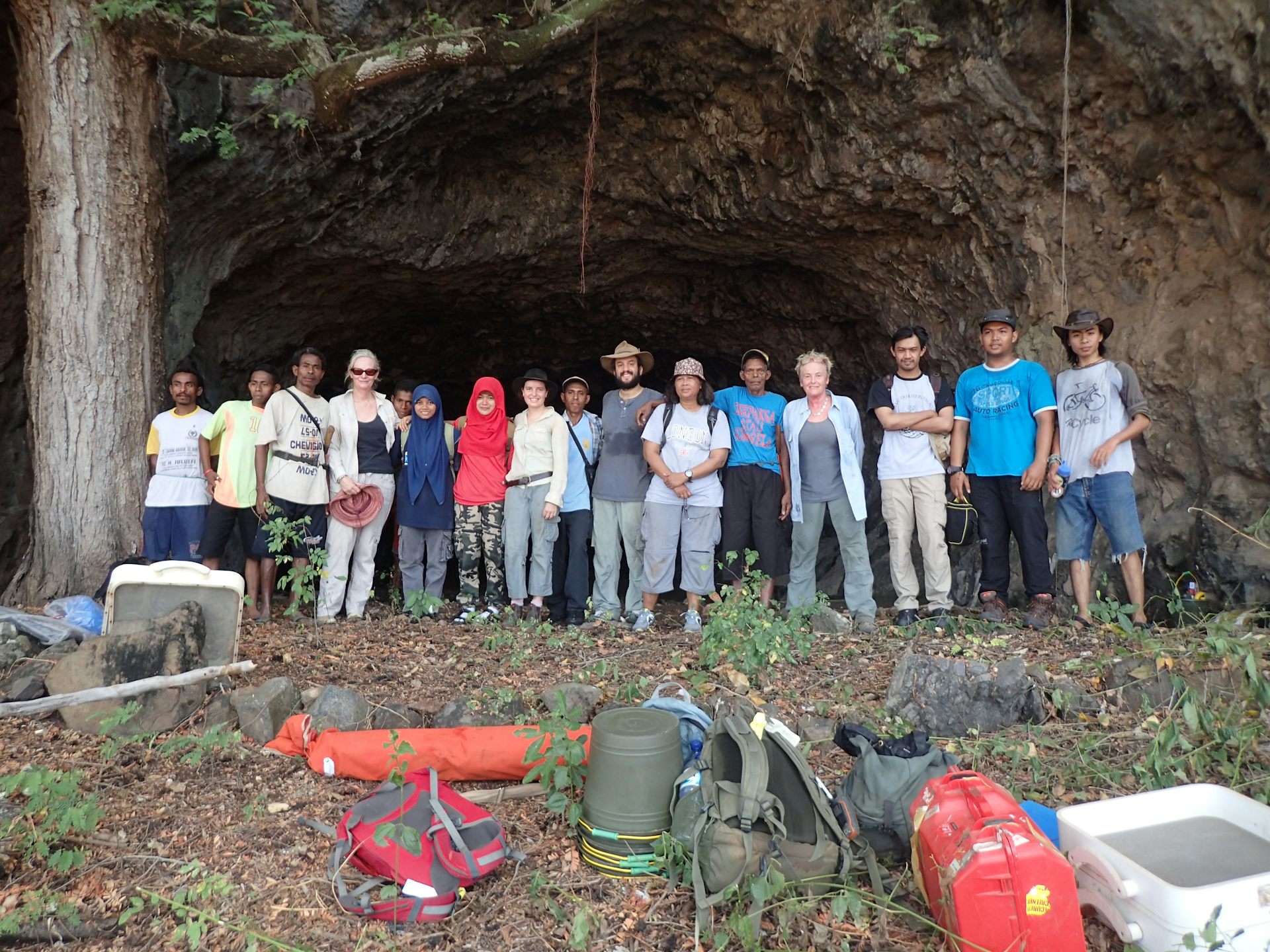 Penelitian kami adalah proyek kolaboratif yang melibatkan arkeolog Australia dan Indonesia. Kami melakukan ekskavasi atau pemeriksaan arkeologis gua Makpan di pantai barat daya Alor pada pertengahan 2016.