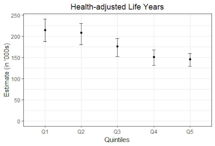 Those in the lowest income bracket had about 1.5 times more health gains than their wealthiest counterparts. This was mostly because poor people in Indonesia have comparatively higher average blood pressure.