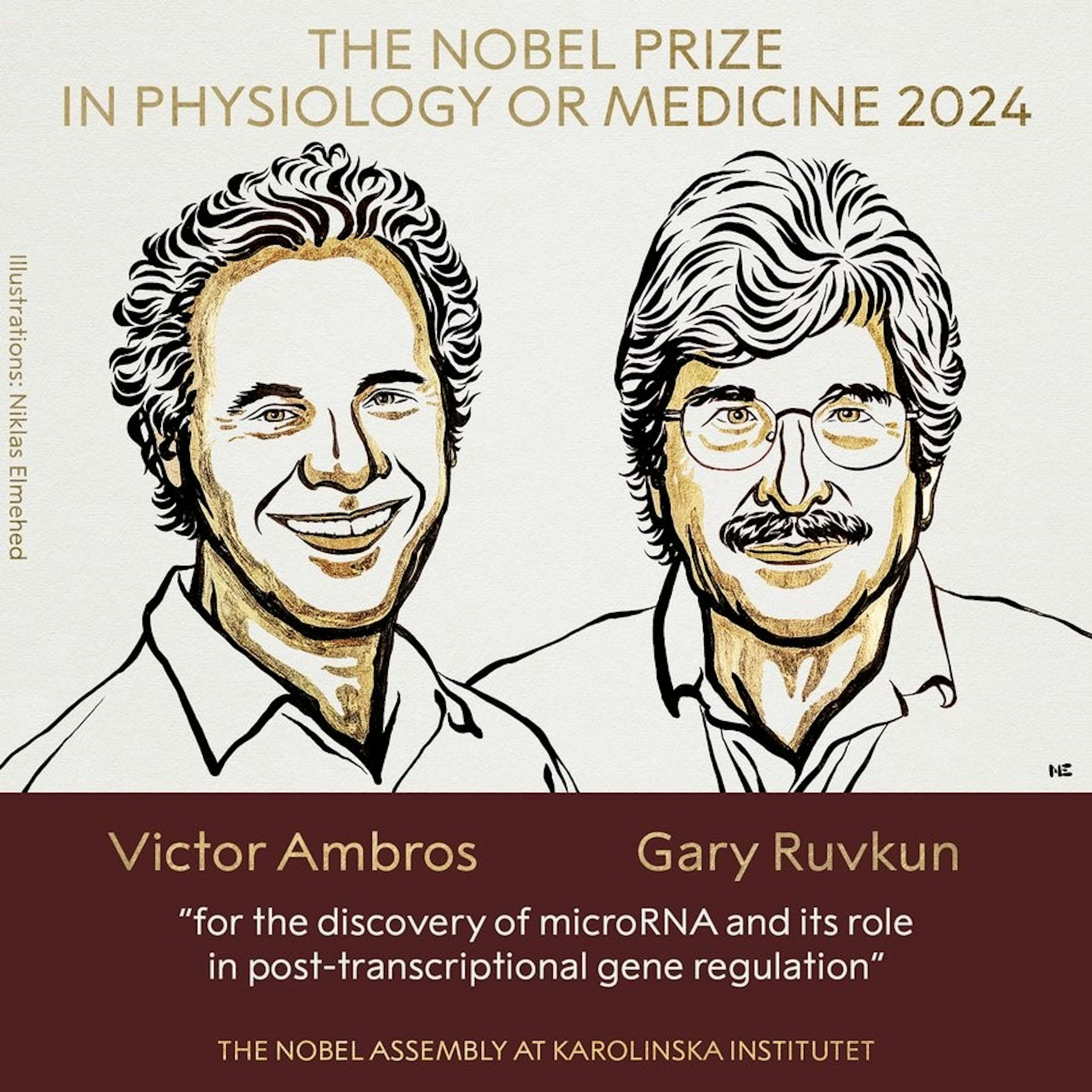 Penghargaan Nobel Fisiologi atau Kedokteran 2024 diberikan kepada dua ilmuwan asal Amerika Serikat (AS), Victor Ambros dari UMASS Chan Medical School dan Gary Ruvkun dari Harvard Medical School. Keduanya merupakan penemu microRNA (miRNA atau RNA-mikro), sekumpulan molekul kecil yang berperan sebagai pengendali gen dalam sel tubuh kita.
