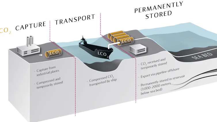 Proses penangkapan, transportasi, dan penyimpanan karbon (courtesy of Equinor ASA).