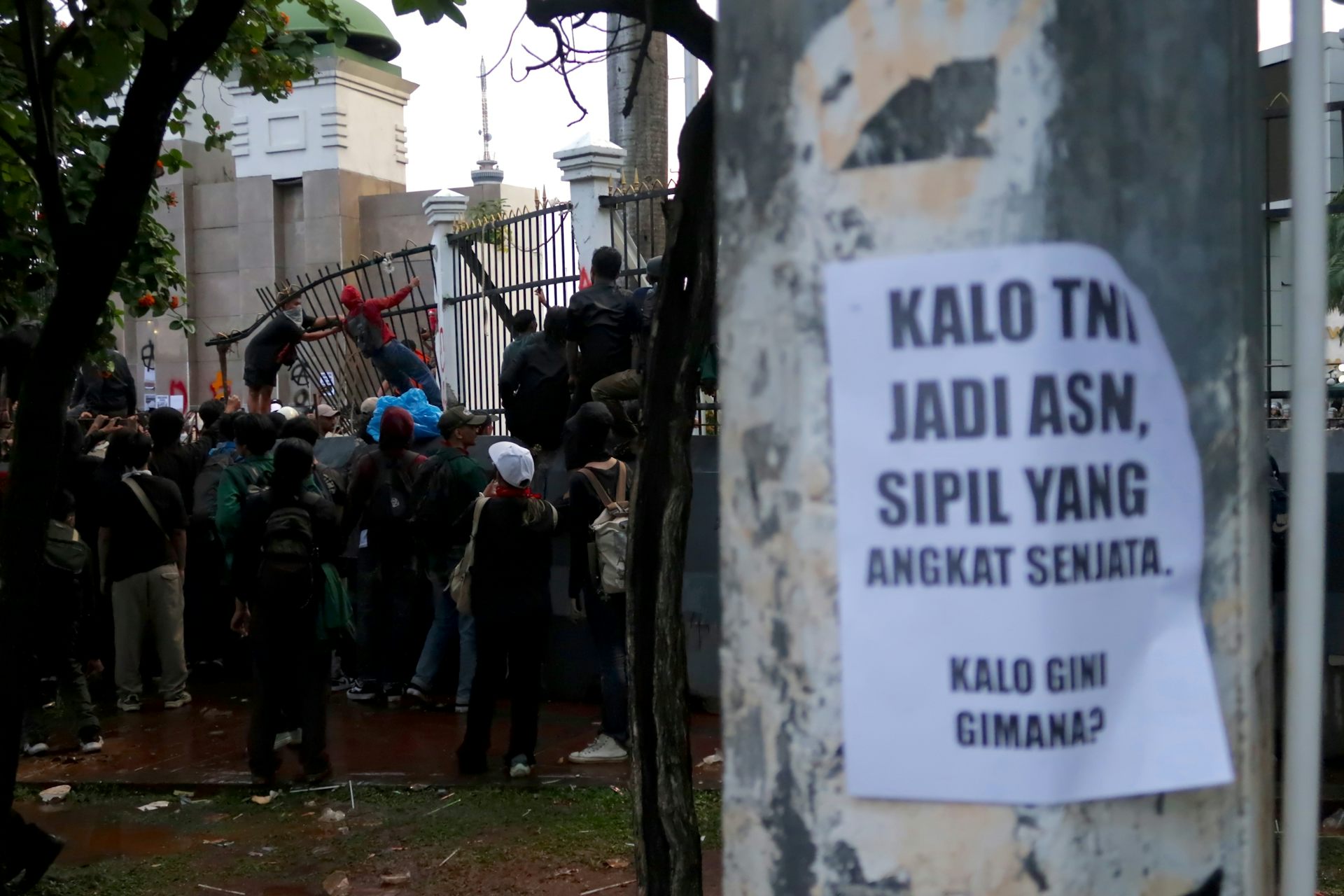 Setelah Undang-Undang Tentara Nasional Indonesia (UU TNI) terbit dan aksi “Indonesia Gelap” berlangsung masif di berbagai daerah, trauma kolektif atas doktrin dwifungsi ABRI bersemi kembali. Doktrin ini—yang kental terasa dalam kebijakan politik era Orde Baru—memungkinkan militer untuk menjalankan peran pertahanan sekaligus pengatur negara.
