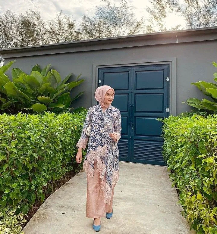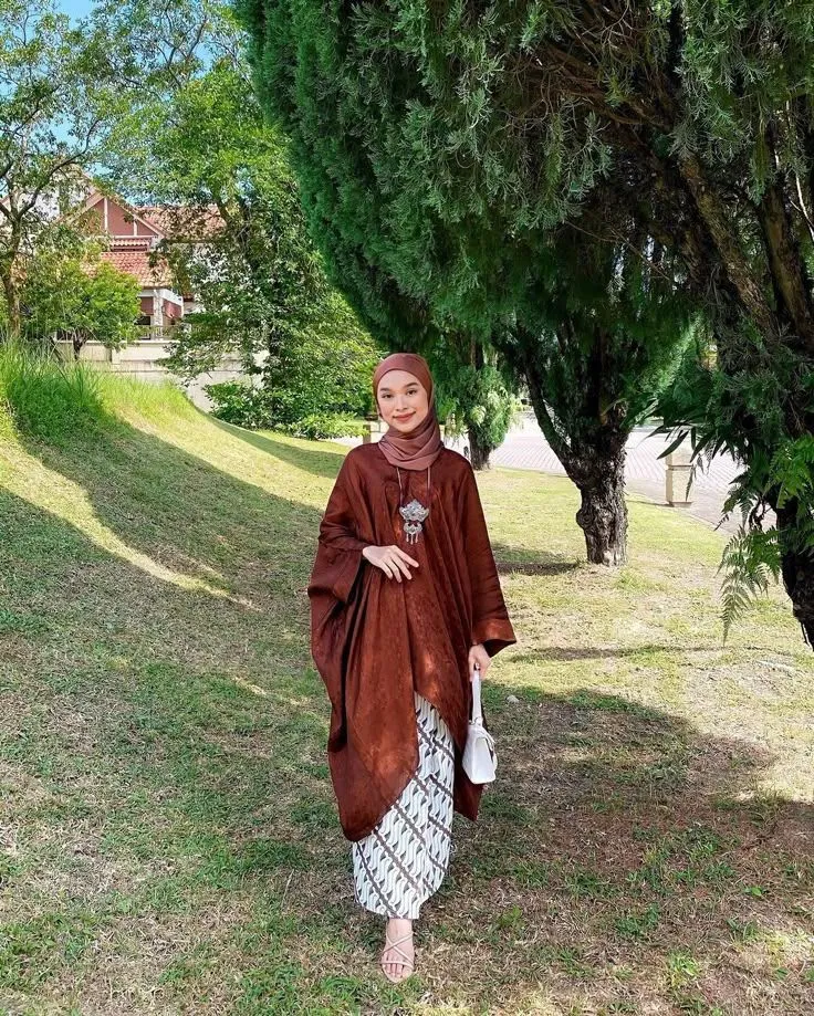 7. Kaftan Cokelat dengan Rok Batik Instan