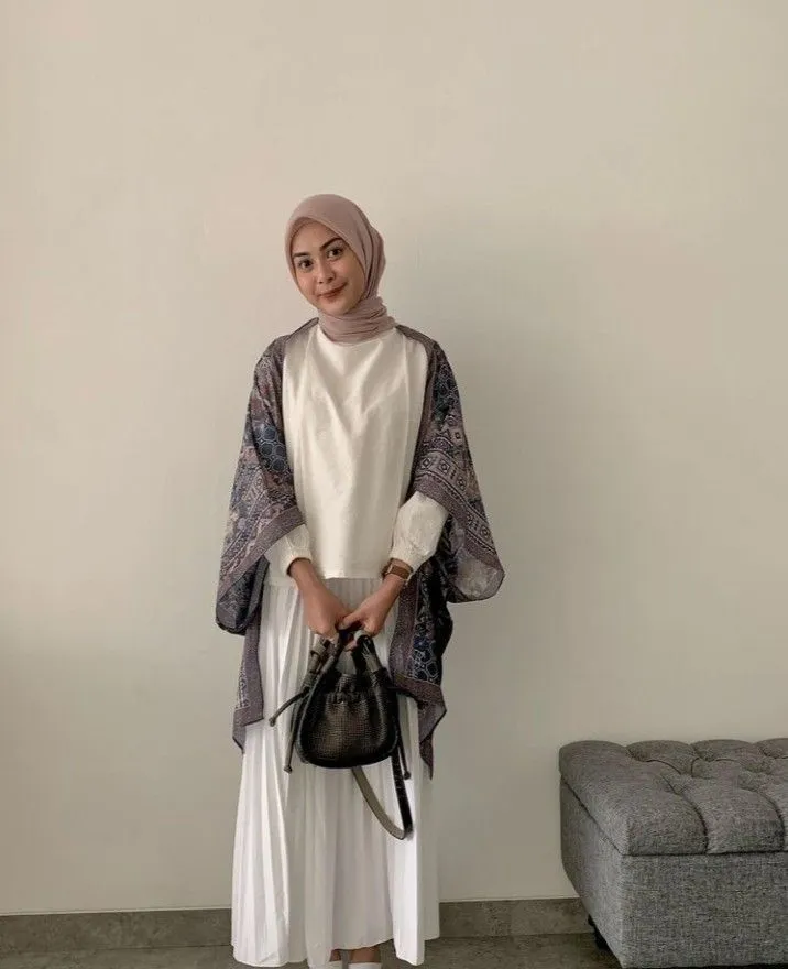 Pakai kaftan dan rok batik instan emang nyaman banget | Photo via Pinterest