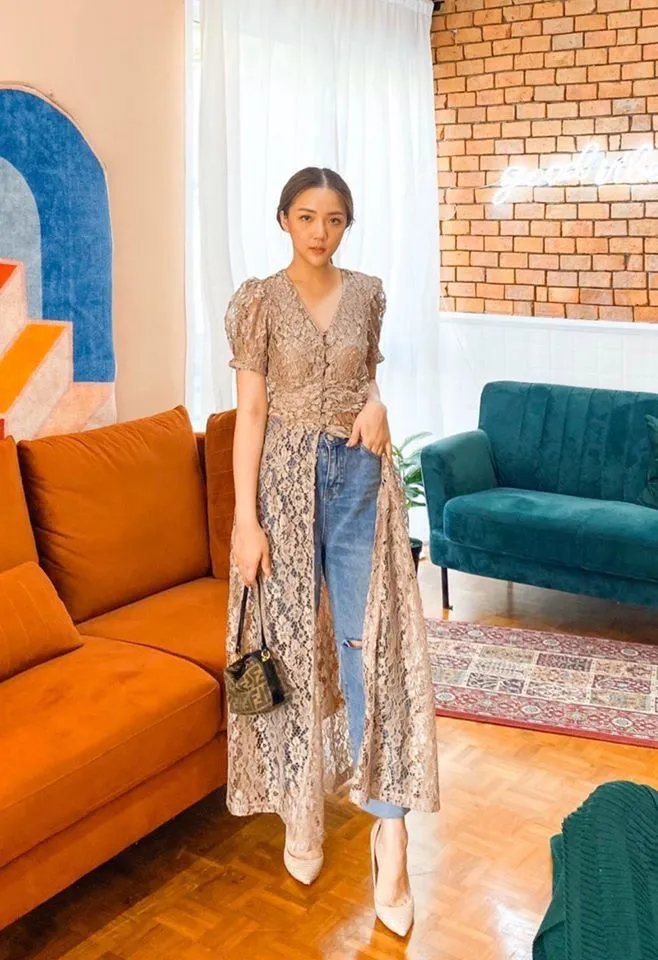 6. Lace Dress dan Celana Jeans