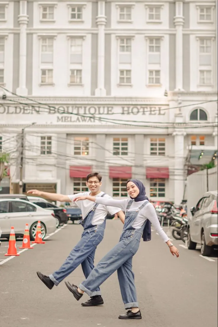3. Couple Jumpsuit dengan Pose yang Playful