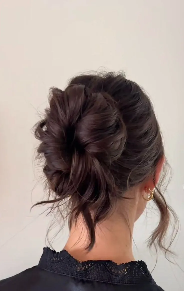 8. Model Gaya Rambut Low Textured Bun