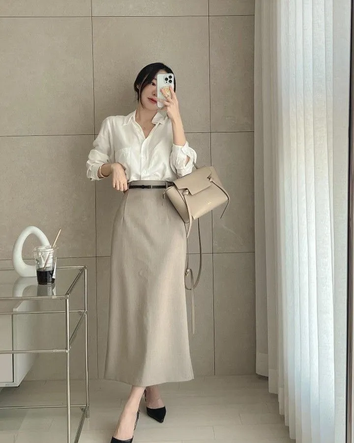 Buat kamu yang butuh confidence boost ekstra ketika bekerja, Korean pencil skirt yang panjang ini bisa jadi jawaban paling masuk akal. Model rok yang menonjolkan sisi feminin tersebut dapat membantu memancarkan pesonamu yang siap-siap membuat orang minta link produk biar ikutan checkout. Ditambah dengan memakai heels, perpaduan gaya antara Korean pencil skirt dan kemeja mempertegas body line-mu. Tinggal pilih sling bag warna senada dan aplikasikan gaya rambut seperti cepol, two block ponytail, dan sebagainya.