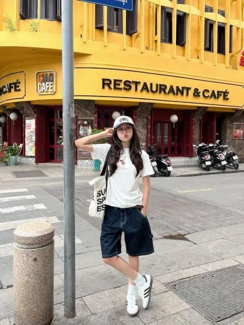 8. T-shirt dan Baggy Denim Short