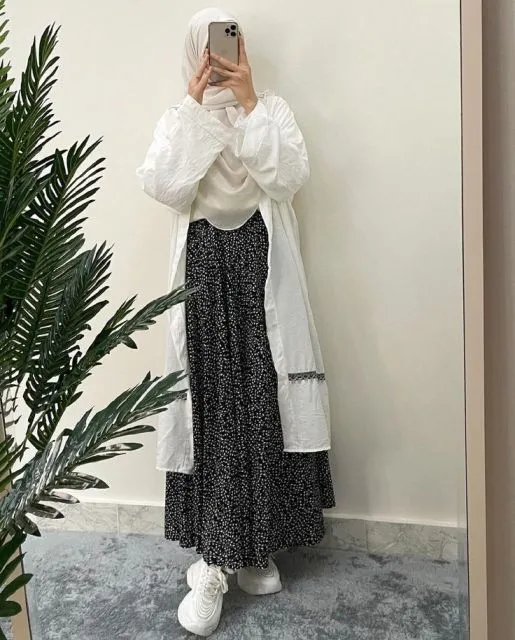 Siapa nih yang tetap tampil syar’i meski cuaca panasnya bukan main? Nah, kamu bisa aplikasikan long cardigan dan rok maxi. Mix and match ketiganya sangatlah praktis, effortless, tapi kamu terlihat tetap modis. Look kamu pun jadi terkesan polished tanpa harus kelihatan too much. Sedikit tips biar kamu nggak kepanasan saat aktivitas di luar ruangan, pastikan selalu memakai atasan warna putih, yellow light, atau warna-warna terang agar dapat memantulkan cahaya matari. Sebaliknya, hindari warna-warna gelap seperti hitam, navy, dan maroon sebagai baju atasan musim panas.
