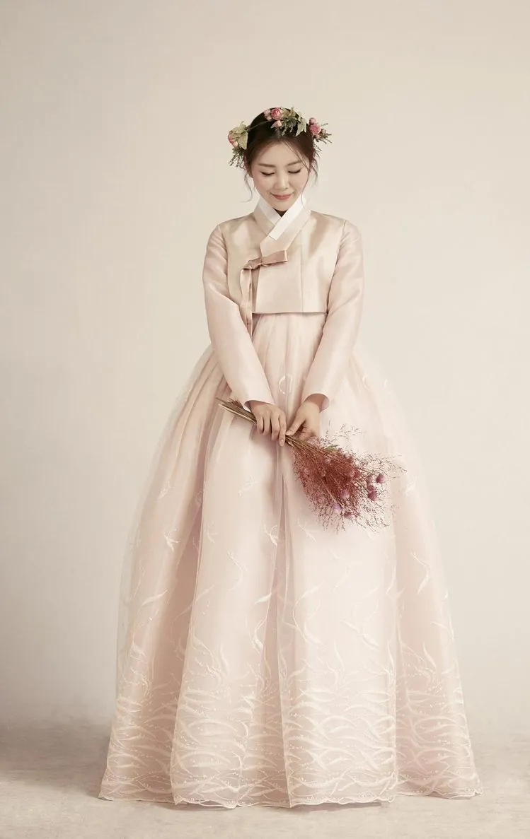 Selain anggun, gaun pengantin Korea model hanbok juga bikin kamu kelihatan manis | Source: bidanbim.com or 비단빔
