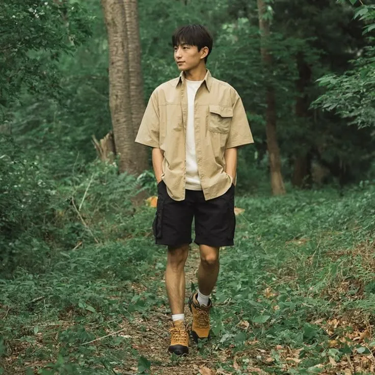 Untuk aktivitas outdoor, kamu bisa mix and match celana cargo pendek dengan t-shirt, kaos, atau pun dibuat lebih elegan dengan memakai pocket shirt warna earthy.